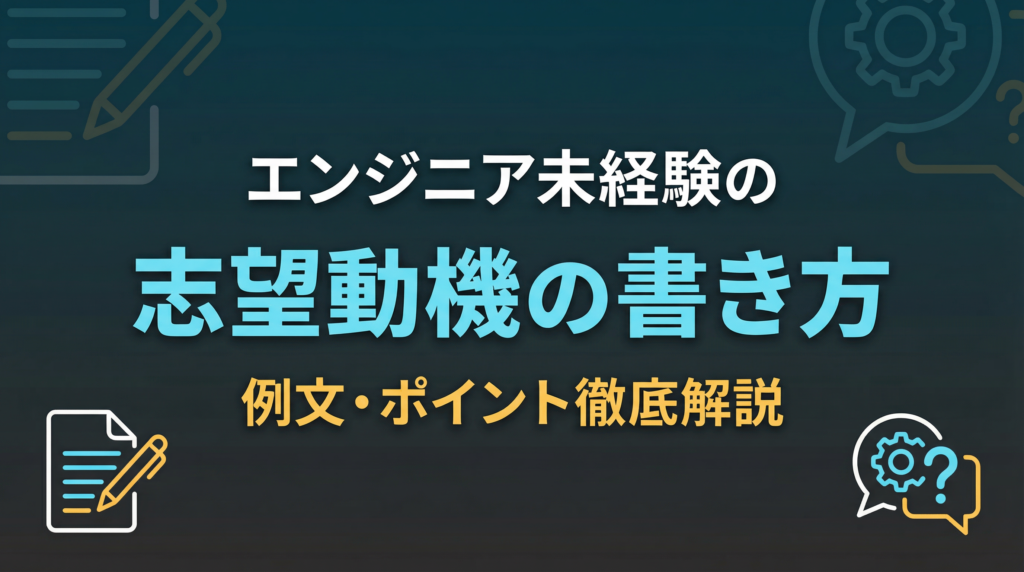 エンジニア未経験から転職する際、志望動機をどう書けばいいか悩んでいませんか。「プログラミング経験がないのに何をアピールすればいいのかわからない」「異業種からの転職でも説得力のある志望動機を作りたい」という声は、当社の面談でもよく聞きます... -