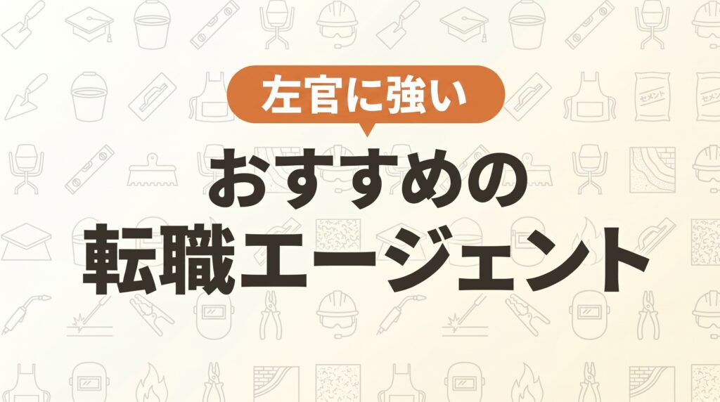 左官の転職を成功させたいなら、建設業界に強い特化型エージェントと総合型エージェントを2〜3社併用するのが最短ルートです。特化型は左官の現場事情を理解しており、総合型は求人数の多さで選択肢を広げてくれます。両方を使うことで、年収アップ・条件... -