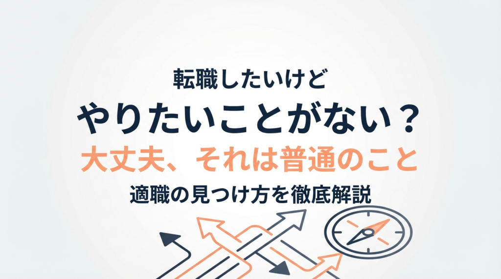 「転職したいけどやりたいことがない」こんな悩みを持つ方は、実はあなただけではありません。キャリア相談を受けていると、「次にやりたいことが見つからない」「転職サイトを見ても、ピンとくる求人がない」という声を非常によく聞きます。 SNSやメディ... -