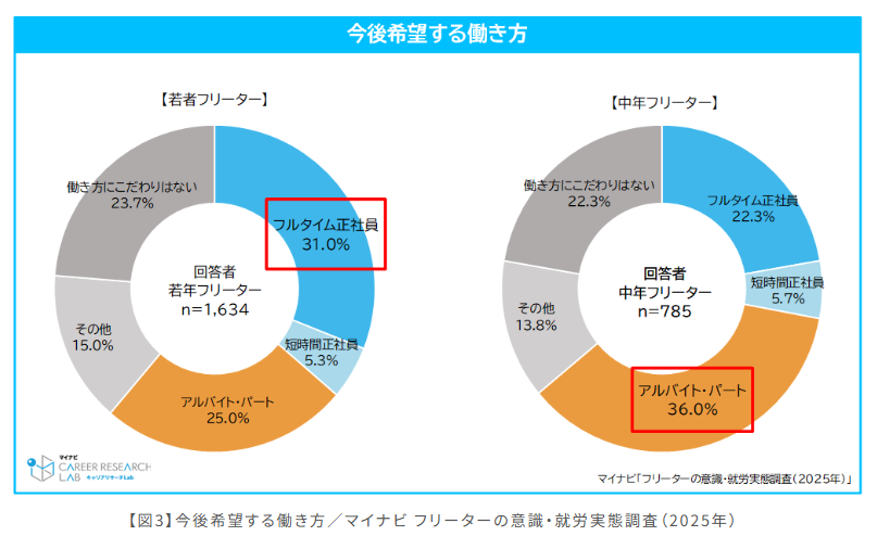【引用】マイナビキャリアサーチLab|フリーターの意識・就労実態調査(2025年)