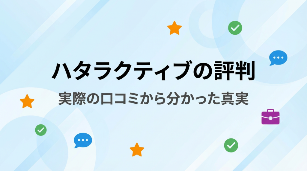 「ハタラクティブって本当に良いの?ネットの評判は本当?」「やばい、騙されたっていう口コミを見て不安…」 そんな不安を抱えているあなたへ。ネット上には様々な情報が溢れていますが、大切なのは「事実」と「感情」を分けて考えることです。 ビギナーズ... -