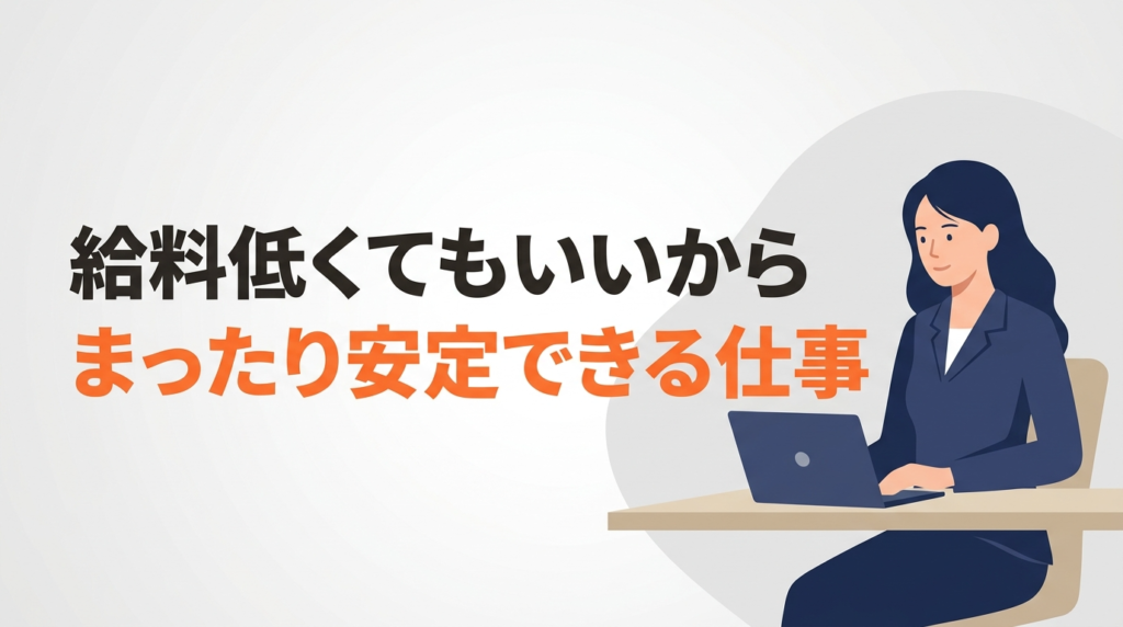 「給料が低くてもいいから、まったり安定した仕事がしたい…」毎日の激務やプレッシャーに追われながら、ふとそんな気持ちが頭をよぎったことはありませんか。成果を出さなければという焦り、終わりの見えない残業、ぎくしゃくした人間関係。心も体も疲れ切... -