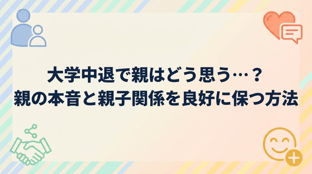 「大学中退を親に伝えたとき、親はどう思うのだろう」そんな不安を抱えて、なかなか切り出せずにいる方は少なくありません。親に失望されるのではないか、怒られるのではないかという恐怖は、中退を決意した本人にとって大きな精神的負担です。 文部科学省... -