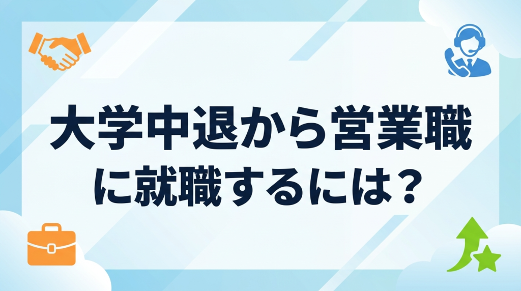 「大学中退でも営業職で活躍できるのだろうか」「学歴がないと営業の仕事には就けないのでは…」と不安に感じていませんか?結論から言えば、営業職は学歴よりも実力と成果で評価される職種であり、大学中退者でも十分に活躍できるフィールドです。 実際に... -