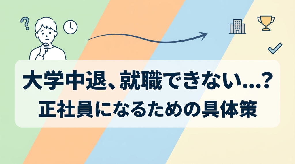 「大学中退したら就職できないのでは?」と不安を感じていませんか?周囲は新卒で就職していく中、自分だけ取り残されたような焦りを抱えている方も多いはずです。 実際のデータを見ると、大学中退者の正社員就職率は33.9%にとどまり、非正規雇用率は45.7%... -