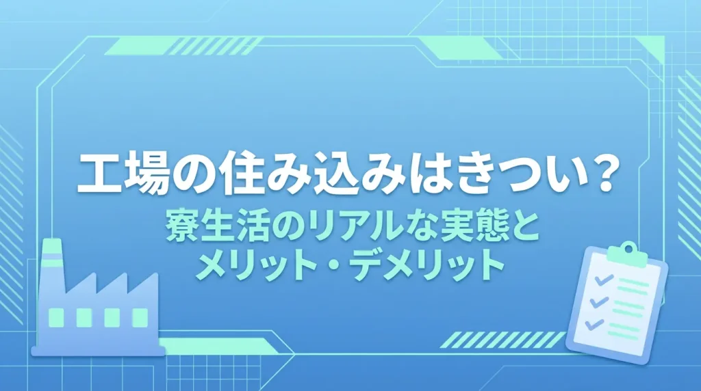 「工場の住み込みはきつい…。」慣れない寮生活への不安や、今の環境を続けていいのかという迷いを抱えていませんか?工場の住み込みにはきつい面がある一方で、家賃・光熱費を大幅に節約できるメリットもあります。この記事では、住み込みがきついと言われ...
