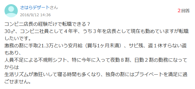 【引用】Yahoo!知恵袋|コンビニ店長の経験だけで転職できる?