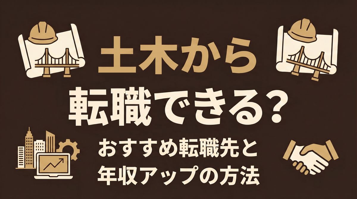A: 転職できます。土木で培ったプロジェクト管理・安全管理・CAD操作などのスキルは、製造業・IT・不動産など幅広い業界で評価されます。大切なのは経験を他業界目線で言語化することです。