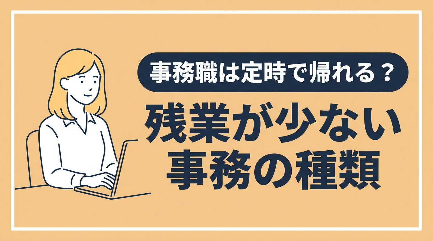 事務職は「毎日定時退社」とは限りませんが、他の職種と比べて残業が少ないのは確かです。求人選びの際は「月平均残業時間」の記載を必ずチェックし、繁忙期の残業状況も面接で確認しておくと安心ですよ。