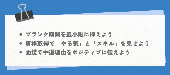 • 空白期間や中退理由も、伝え方次第でマイナス評価を避けられる