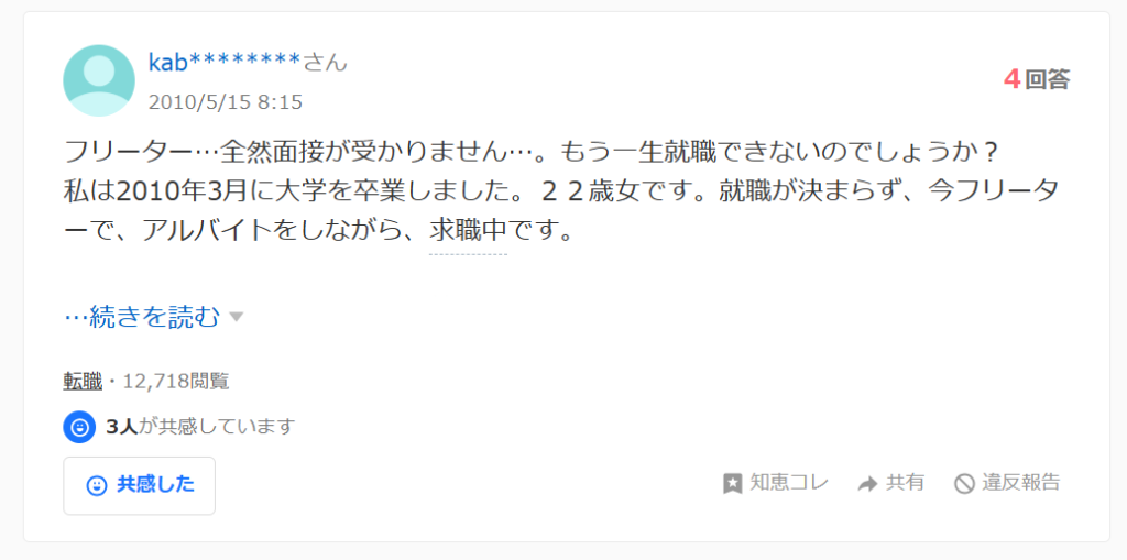 【引用】Yahoo!知恵袋|フリーター…全然面接が受かりません…。もう一生就職できないのでしょうか?