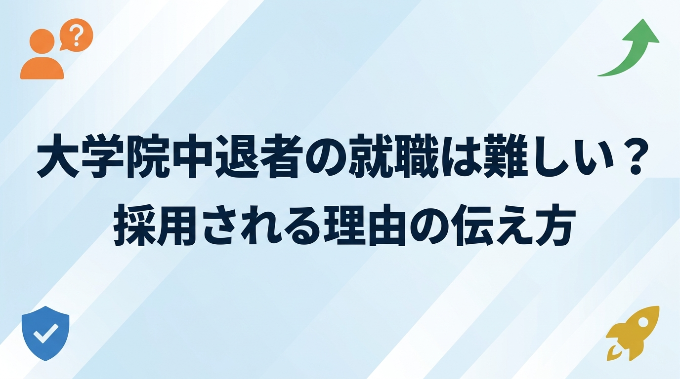 この記事では、大学院中退から就職を成功させるために知っておきたいデータや、採用担当者に好印象を与える中退理由の伝え方、狙い目の職種・業界、就活の進め方までを体系的に解説します。中退の経歴をハンデではなく強みに変えるヒントを、ぜひ最後までご覧ください。