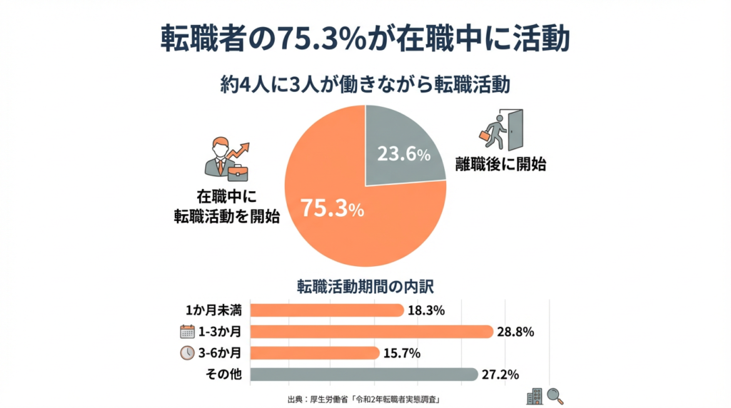 転職者の75.3%が在職中に活動している