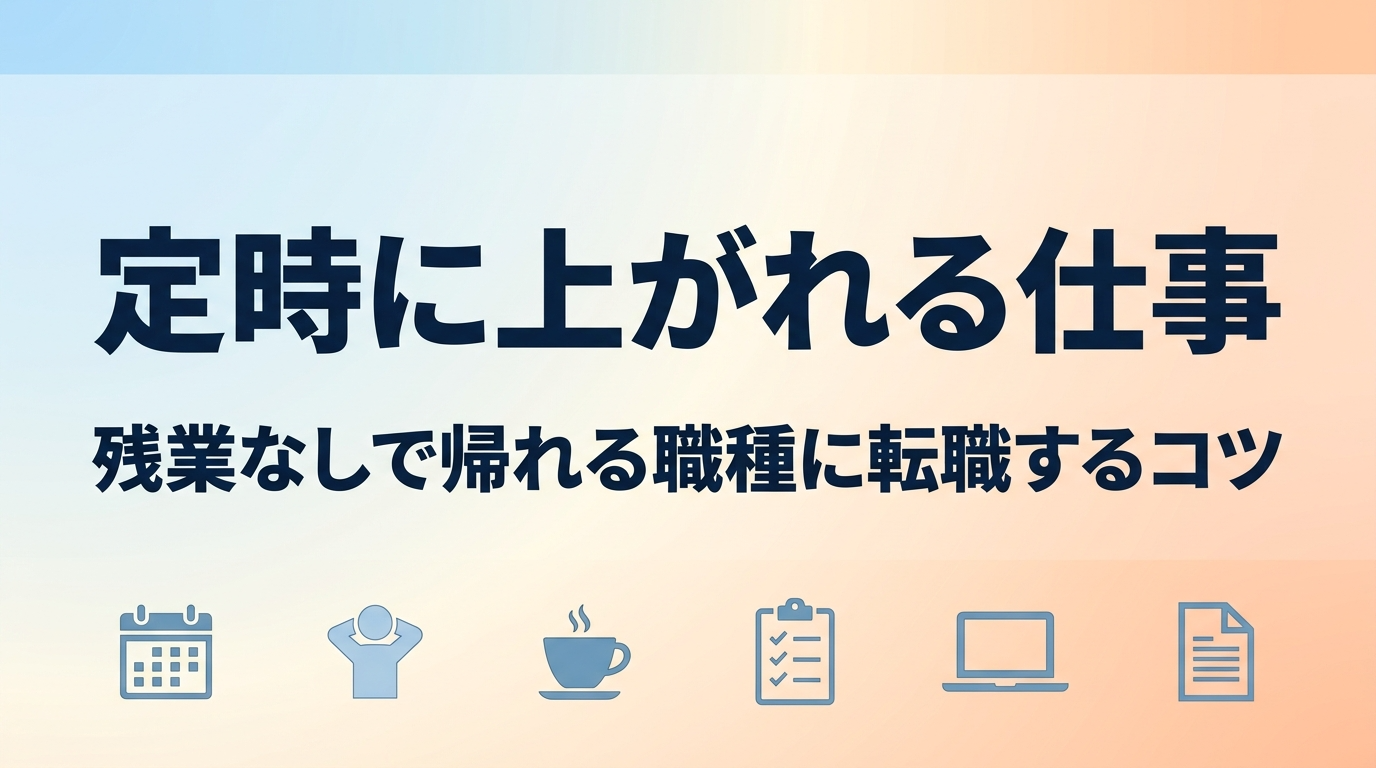 定時に上がりやすい仕事は意外とたくさんあります。大切なのは「自分にとって何が重要か」を明確にしたうえで選ぶこと。残業時間だけでなく、やりがいや年収とのバランスも考慮して、ベストな選択肢を見つけていきましょう。