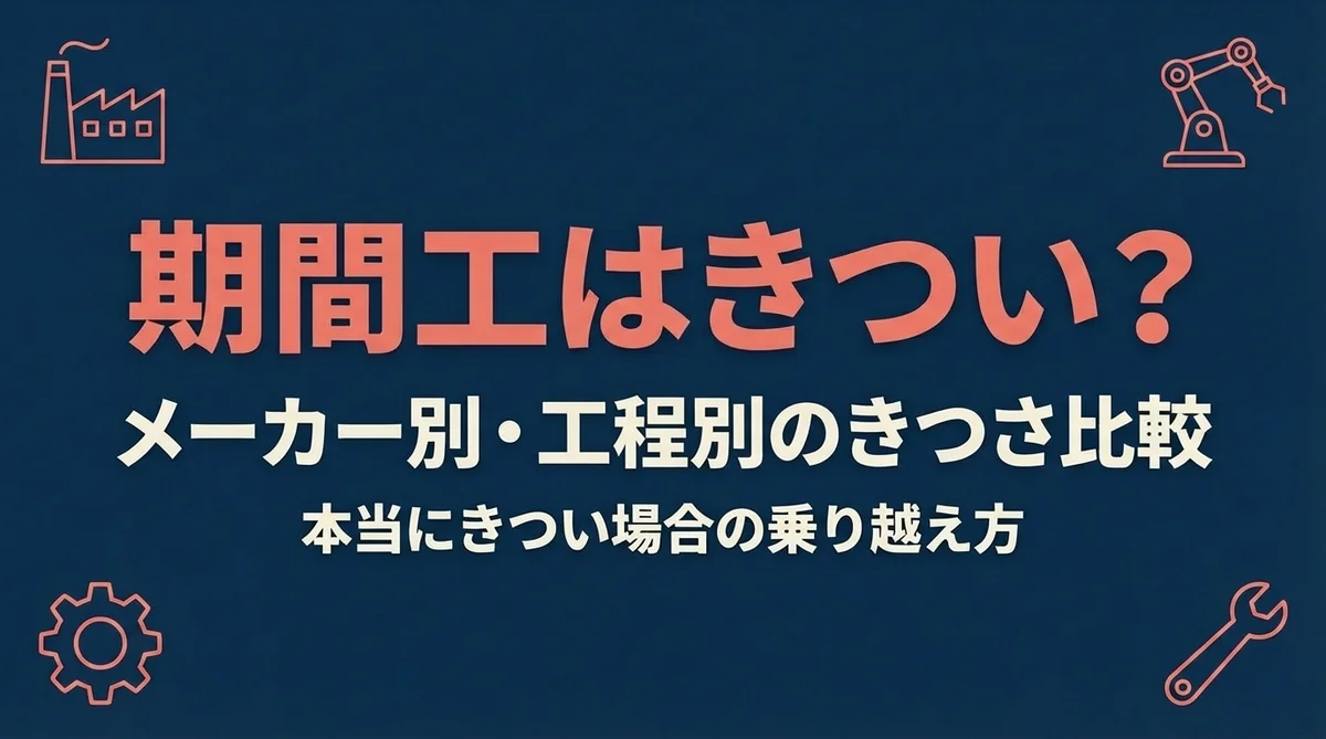 この記事では、期間工のきつさを5つの理由から詳しく解説し、メーカー別・工程別のきつさ比較、1日のスケジュール、労働時間データ、繁忙期と閑散期の違い、きつさを乗り越える方法まで、公的データと現場の声をもとに徹底的に解説します。