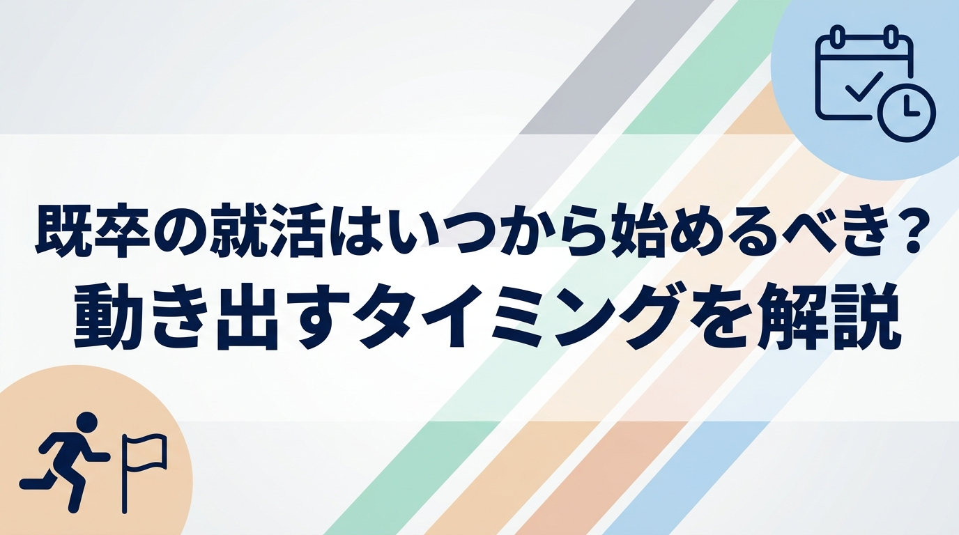 この記事では、既卒の就活を始める最適な時期・タイミングと、先延ばしにするリスク、卒業後すぐに動いた場合のロードマップまで詳しく解説します。「いつから始めよう」と迷っている方は、ぜひ最後まで読んでみてください。