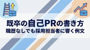 既卒の自己PRの書き方|職歴なしでも採用担当者に響く例文とコツを解説 「既卒だけど自己PRに何を書けばいいかわからない」「職歴がないから強みが見つからない」と悩んでいる方は多いのではないでしょうか。 結論から言うと、既卒の自己PRは...