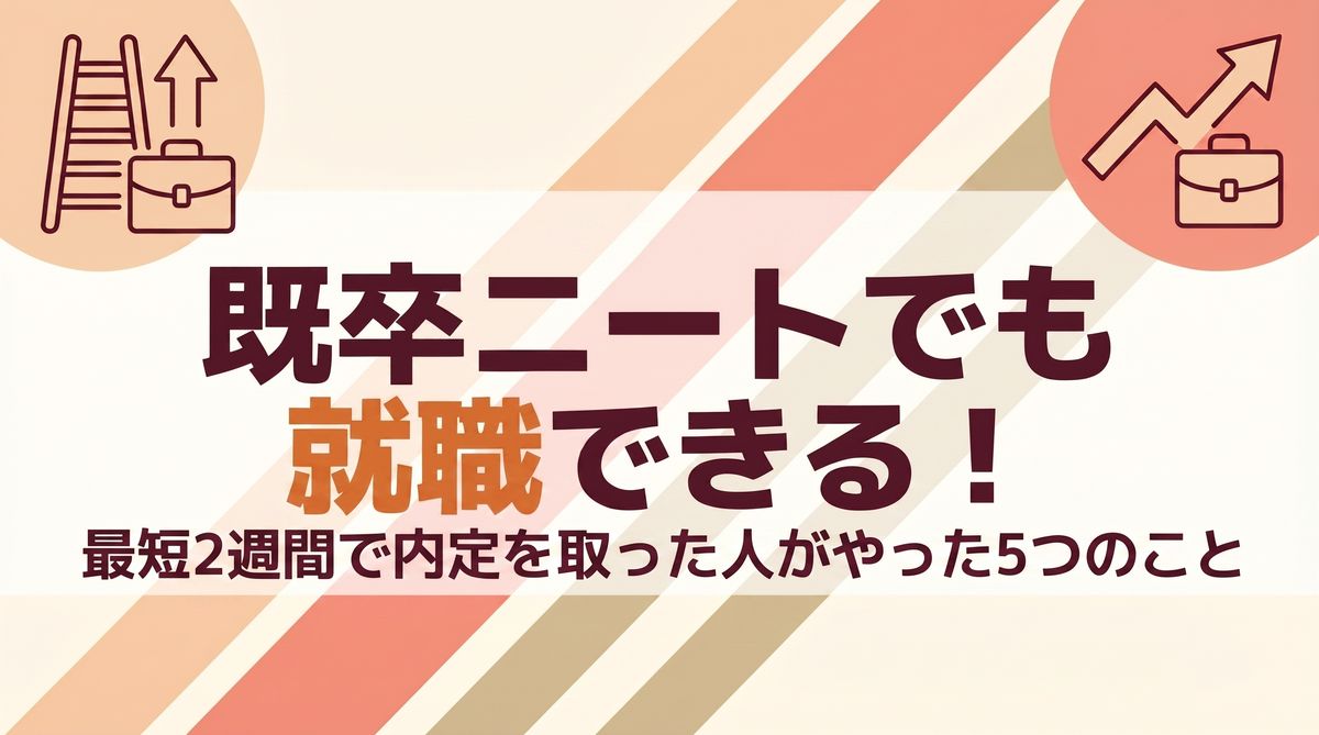 この記事では、既卒ニートでも就職できる理由、最短で内定を取った人が実際にやった5つのこと、そしておすすめの就職エージェントまでわかりやすく解説します。