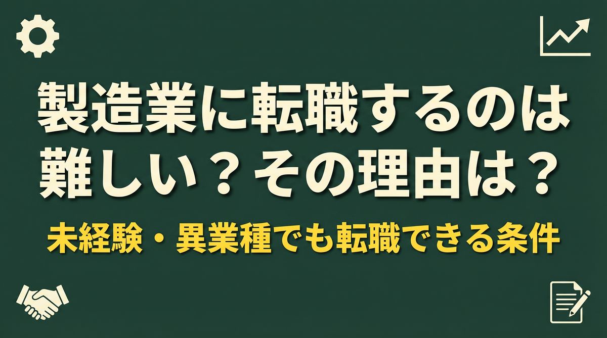 この記事では、製造業の転職が難しいと言われる理由を7つに整理したうえで、難しくないケースや転職を成功させるための具体的な条件と対策まで解説します。