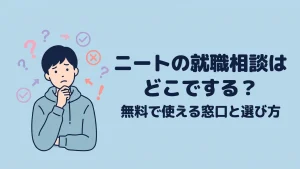 ニートの就職相談はどこでする?無料で使える窓口と選び方を徹底解説 「就職の相談をしたいけど、どこに行けばいいのかわからない」「ハローワークは怖い気がする」と感じていませんか。 どこに相談すればいいかわからないまま、結局何もし...