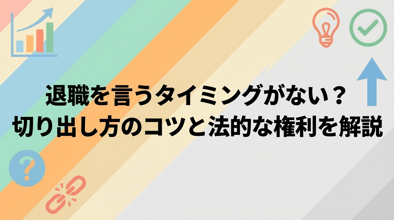 この記事では、退職を言うタイミングが見つからないと悩んでいる方に向けて、タイミングを自分から作る具体的な方法、切り出し方のコツ、法的な権利まで、実践的に解説します。
