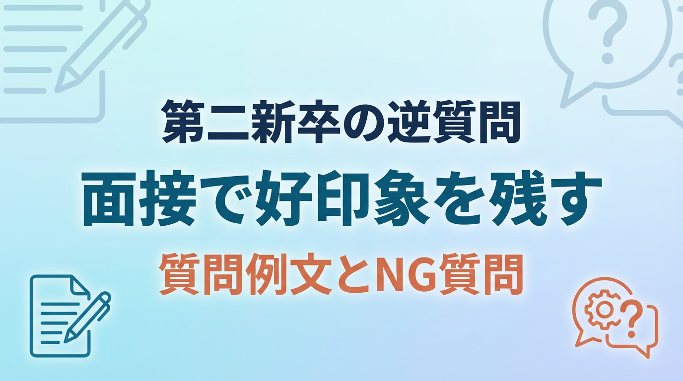 この記事では、第二新卒の面接で使える逆質問の例文と、好印象を残すための考え方を解説します。面接官別の逆質問のコツや、避けるべきNG質問もお伝えします。