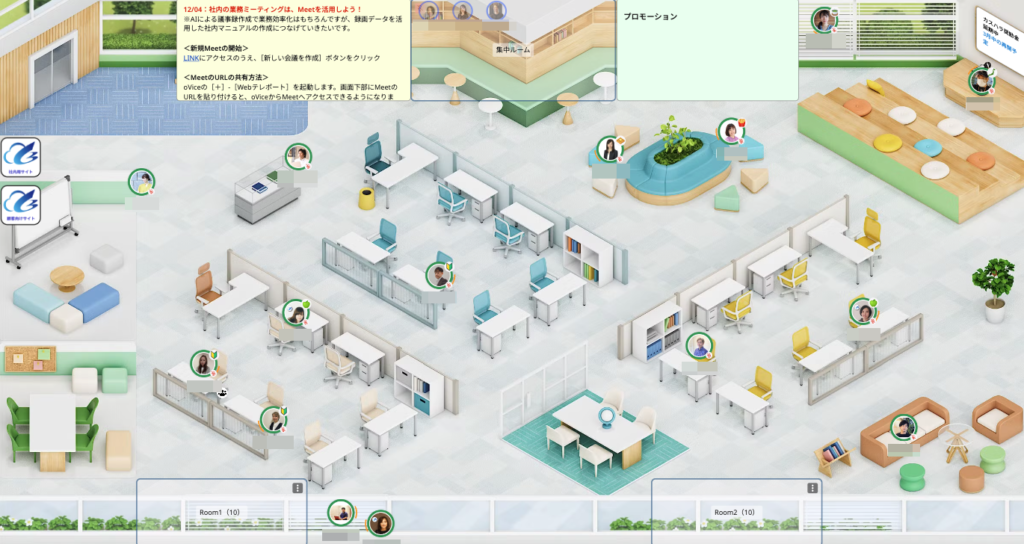 普段は「oVice」というバーチャルオフィスに出勤するスタイルで、オンラインであっても、まるで同じ空間に座っている感覚で働いています。顔を見たいときはすぐに声をかけてオンラインで話せますし、チャットも併用しながらコミュニケーションを取っています。