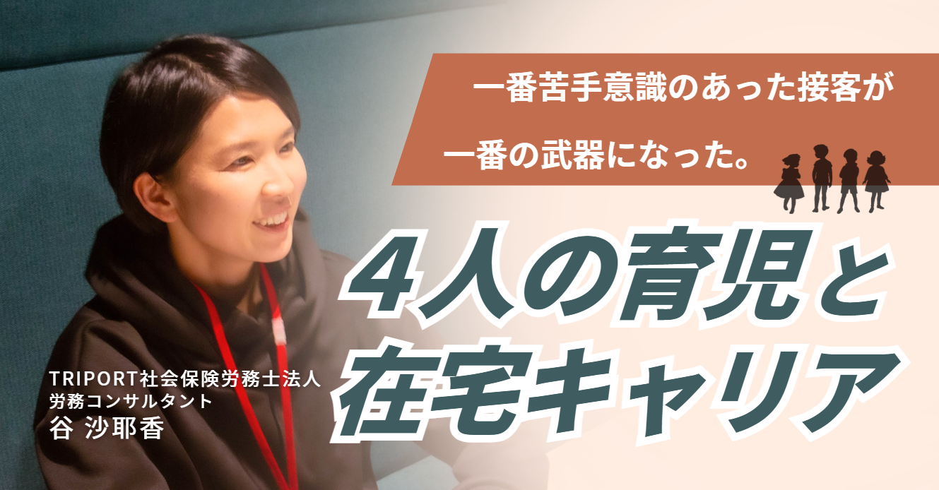 「一番苦手意識のあった接客が、一番の武器になった」TRIPORT社会保険労務士法人 谷さんの”4人育児と在宅キャリア”