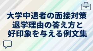 大学中退の面接対策|退学理由の答え方と好印象を与える例文集 「大学中退の理由を面接でどう説明すればいいのだろう」「正直に話したらマイナス評価になるのでは…」と不安を感じていませんか?大学を中退した経歴があると、面接での...