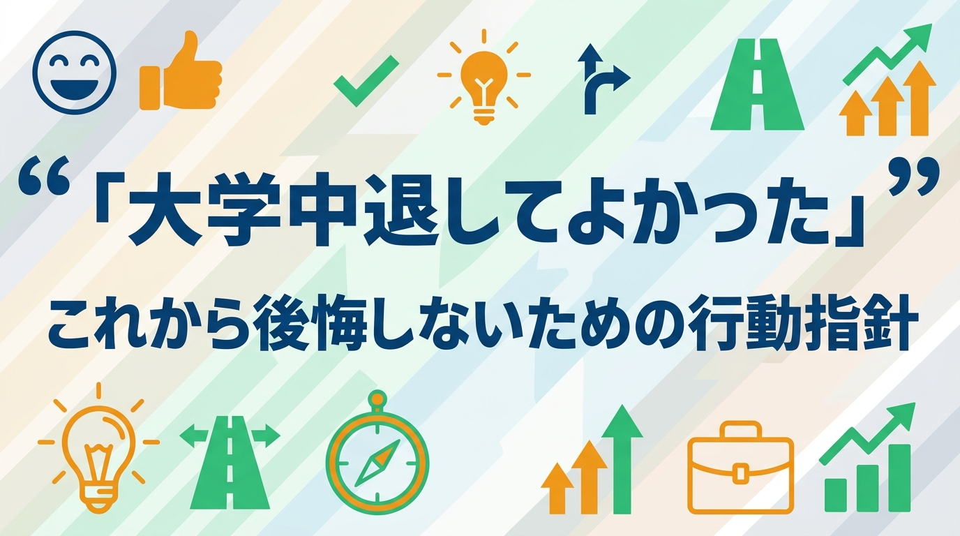 - 大学中退してよかったと思える理由は「キャリアの早期構築」「社会人経験の蓄積」「やりたいことへの集中」「学費負担の軽減」「精神的安定」の5つ