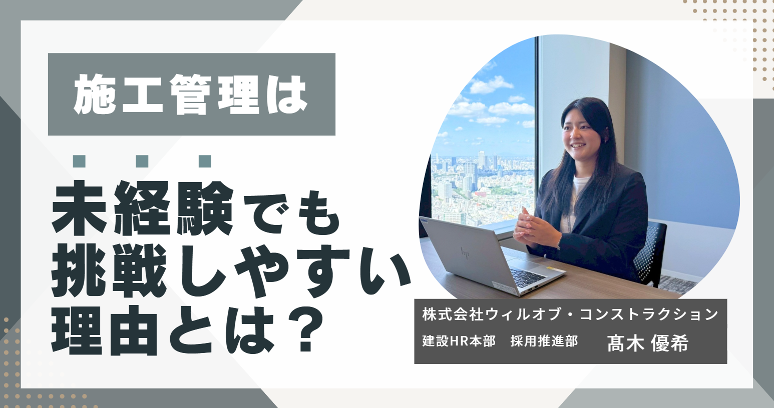 「施工管理って、未経験でも本当に大丈夫ですか?」株式会社ウィルオブ・コンストラクション採用担当 髙木さんに聞いた、挑戦しやすさの理由